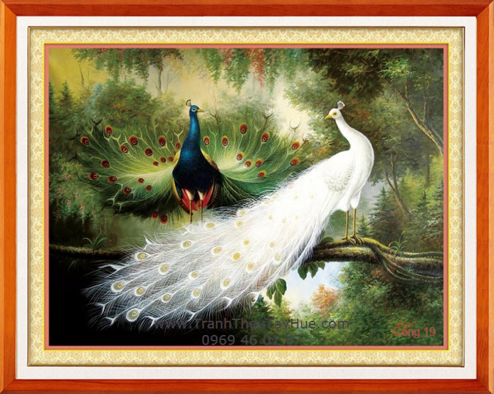Tranh thêu con công là loại tranh thêu truyền thống được thêu hoàn toàn bằng tay bởi những thợ thêu dày dặn kinh nghiệm của đất Cố Đô Huế. Những bức tranh thêu con công là loại tranh thêu đặc sắc và cao cấp nhất trong các loại tranh thêu về các loài chim, nó thể hiện sự sang trọng, quý phái. Tranh thêu con công được coi là biểu tượng của tình yêu và sự giàu có.Tranh thêu con công giúp gắn kết các thành viên trong gia đình, xua đuổi đi luồng khí xấu mang lại luồng không khí tươi mới, thịnh vượng cho ngôi nhà hoặc văn phòng của bạn, ngoài ra tranh thêu con công được coi là biểu tượng cho sức mạnh của những cơ hội mới, đặc biệt khi bạn gặp vận hạn.