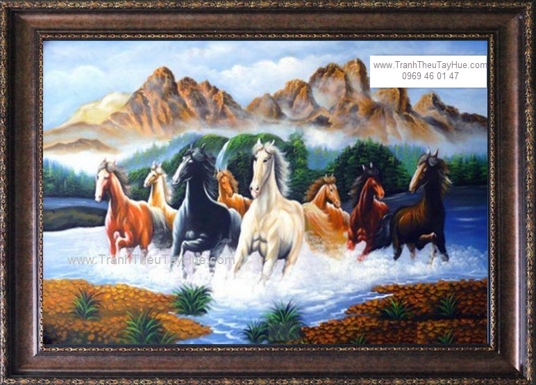 Tranh thêu tay truyền thống Mã Đáo Thành Công - Tranh thêu tay Bát Mã Thành Công là tranh thêu truyền thống của Việt Nam được thêu HOÀN TOÀN THỦ CÔNG BẰNG TAY, bởi những thợ thêu chuyên tâm, lành nghề và dày kinh nghiệm của đất kinh thành Huế, những bức tranh Ngựa này sử dụng các kỹ thuật thêu truyền thống đặc trưng của xứ Huế. Tranh thêu tay Ngựa Mã Đáo Thành Công - Bát Mã Thành Công giúp mang đến cho gia chủ sự may mắn, thành công trong sự nghiệp và cuộc sống.