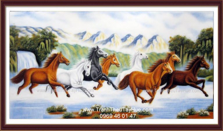 Tranh thêu tay truyền thống Mã Đáo Thành Công - Tranh thêu tay Bát Mã Thành Công là tranh thêu truyền thống của Việt Nam được thêu HOÀN TOÀN THỦ CÔNG BẰNG TAY, bởi những thợ thêu chuyên tâm, lành nghề và dày kinh nghiệm của đất kinh thành Huế, những bức tranh Ngựa này sử dụng các kỹ thuật thêu truyền thống đặc trưng của xứ Huế. Tranh thêu tay Ngựa Mã Đáo Thành Công - Bát Mã Thành Công giúp mang đến cho gia chủ sự may mắn, thành công trong sự nghiệp và cuộc sống.