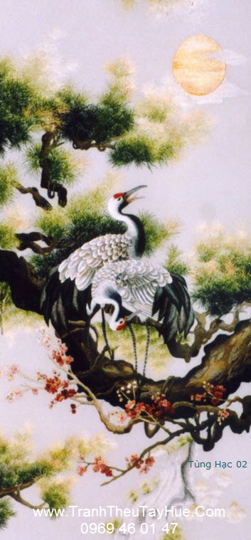 Tranh thêu tùng hạc diên niên là loại tranh thêu truyền thống được thêu hoàn toàn bằng tay bởi những thợ thêu dày dặn kinh nghiệm của đất Cố Đô Huế. Những bức tranh thêu tùng hạc diên niên là loại tranh thêu đặc sắc và cao cấp trong các loại tranh thêu về các loài chim, nó thể hiện sự mãnh mẽ, trường thọ và trí tuệ.Tranh thêu tùng hạc diên niên treo trong nhà sẽ giúp cho căn nhà bạn trở nên sang trọng và ấm cúng hơn ngoài ra nó còn giúp bạn vượt qua được khó khăn tạo ra nguồn nặng lượng sống dồi dào và ý chỉ mạnh mẽ.