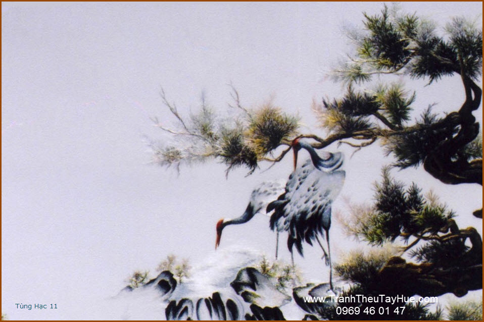 Tranh thêu tùng hạc diên niên là loại tranh thêu truyền thống được thêu hoàn toàn bằng tay bởi những thợ thêu dày dặn kinh nghiệm của đất Cố Đô Huế. Những bức tranh thêu tùng hạc diên niên là loại tranh thêu đặc sắc và cao cấp trong các loại tranh thêu về các loài chim, nó thể hiện sự mãnh mẽ, trường thọ và trí tuệ.Tranh thêu tùng hạc diên niên treo trong nhà sẽ giúp cho căn nhà bạn trở nên sang trọng và ấm cúng hơn ngoài ra nó còn giúp bạn vượt qua được khó khăn tạo ra nguồn nặng lượng sống dồi dào và ý chỉ mạnh mẽ.