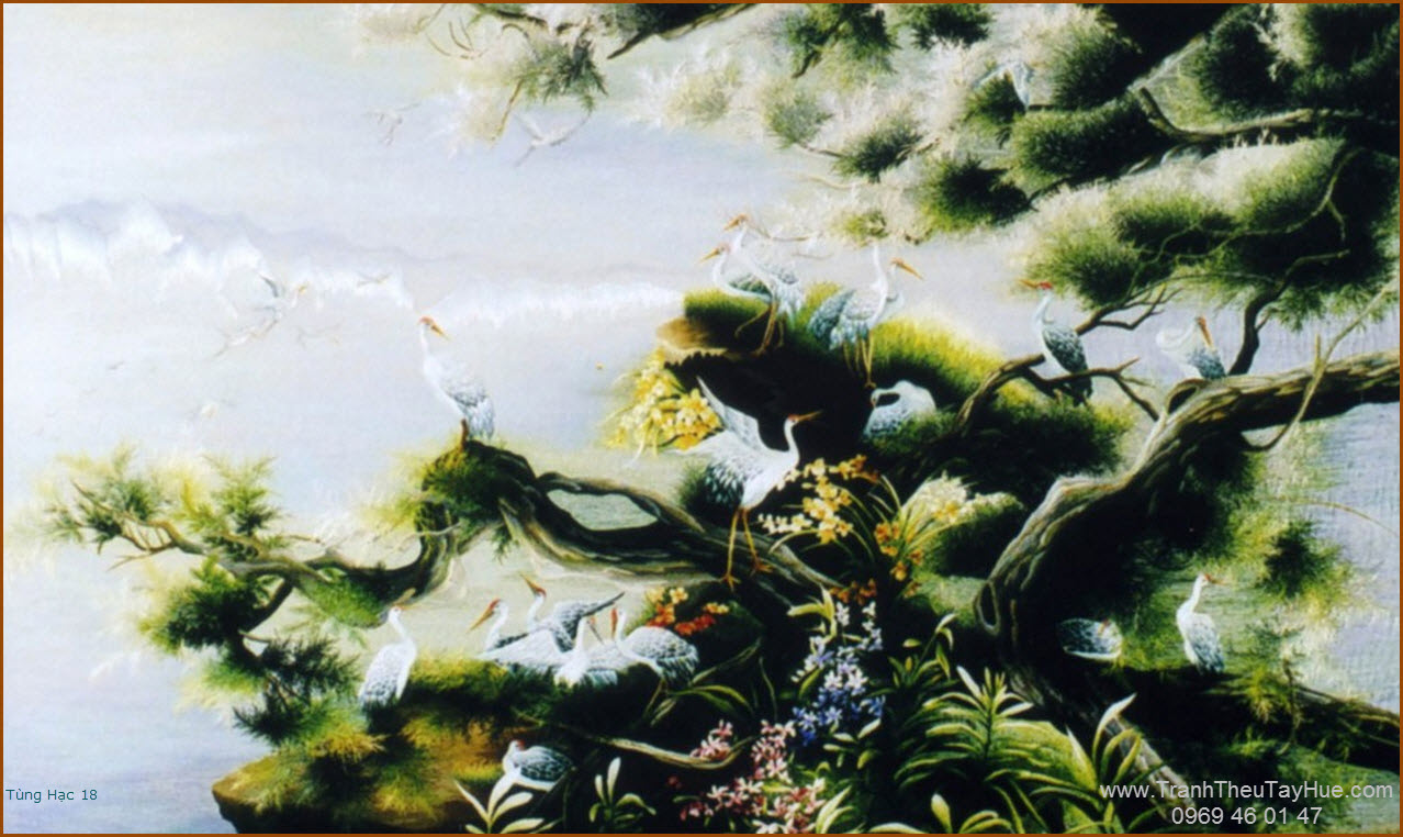 Tranh thêu tùng hạc diên niên là loại tranh thêu truyền thống được thêu hoàn toàn bằng tay bởi những thợ thêu dày dặn kinh nghiệm của đất Cố Đô Huế. Những bức tranh thêu tùng hạc diên niên là loại tranh thêu đặc sắc và cao cấp trong các loại tranh thêu về các loài chim, nó thể hiện sự mãnh mẽ, trường thọ và trí tuệ.Tranh thêu tùng hạc diên niên treo trong nhà sẽ giúp cho căn nhà bạn trở nên sang trọng và ấm cúng hơn ngoài ra nó còn giúp bạn vượt qua được khó khăn tạo ra nguồn nặng lượng sống dồi dào và ý chỉ mạnh mẽ.