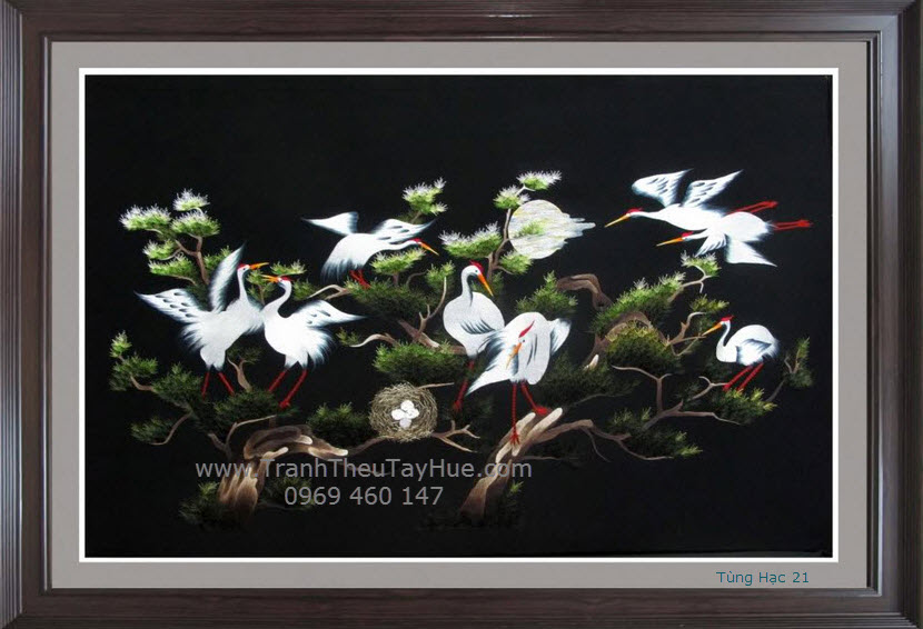 Tranh thêu tùng hạc diên niên là loại tranh thêu truyền thống được thêu hoàn toàn bằng tay bởi những thợ thêu dày dặn kinh nghiệm của đất Cố Đô Huế. Những bức tranh thêu tùng hạc diên niên là loại tranh thêu đặc sắc và cao cấp trong các loại tranh thêu về các loài chim, nó thể hiện sự mãnh mẽ, trường thọ và trí tuệ.Tranh thêu tùng hạc diên niên treo trong nhà sẽ giúp cho căn nhà bạn trở nên sang trọng và ấm cúng hơn ngoài ra nó còn giúp bạn vượt qua được khó khăn tạo ra nguồn nặng lượng sống dồi dào và ý chỉ mạnh mẽ.
