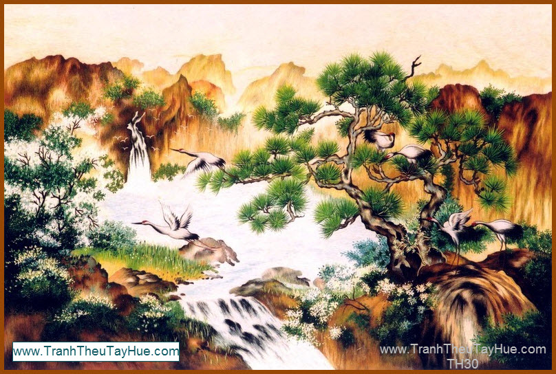 Tranh thêu tùng hạc diên niên là loại tranh thêu truyền thống được thêu hoàn toàn bằng tay bởi những thợ thêu dày dặn kinh nghiệm của đất Cố Đô Huế. Những bức tranh thêu tùng hạc diên niên là loại tranh thêu đặc sắc và cao cấp trong các loại tranh thêu về các loài chim, nó thể hiện sự mãnh mẽ, trường thọ và trí tuệ.Tranh thêu tùng hạc diên niên treo trong nhà sẽ giúp cho căn nhà bạn trở nên sang trọng và ấm cúng hơn ngoài ra nó còn giúp bạn vượt qua được khó khăn tạo ra nguồn nặng lượng sống dồi dào và ý chỉ mạnh mẽ.