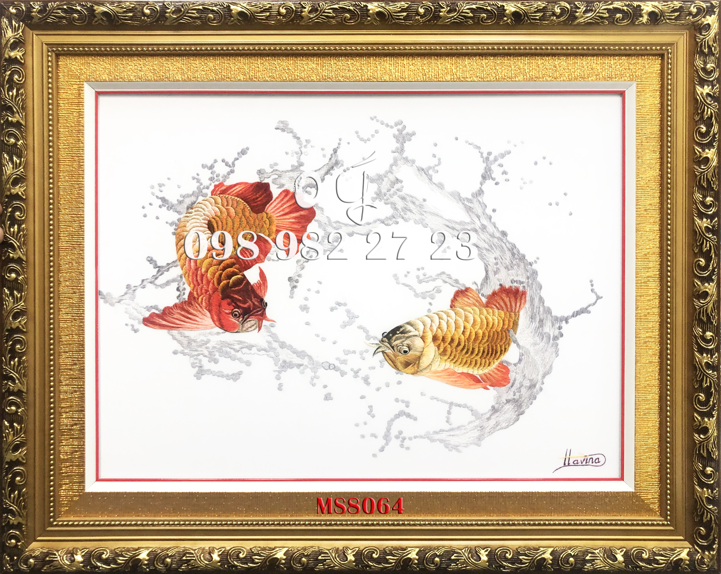 Tên tác phẩm: Tranh thêu cá chép hoa sen MS 8064