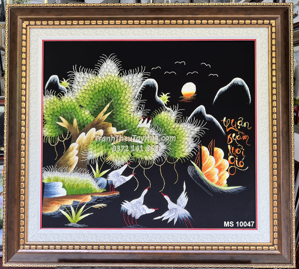 Tranh thêu thuận buồm xuôi gió mà bạn đang xem là một trong những tác phẩm tranh thêu đặc sắc của nghệ thuật thêu tay truyền thống xứ Huế. Những bức tranh thêu này được thêu hoàn toàn bằng tay bởi những nghệ nhân tài hoa và dày dặn kinh nghệm của đất kinh thành Huế.