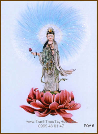 Tranh thêu truyền thống Phật Bà Quan Âm là tranh thêu truyền thống của Việt Nam được thêu HOÀN TOÀN THỦ CÔNG BẰNG TAY, bởi những thợ thêu chuyên tâm, lành nghề và dày kinh nghiệm của đất kinh thành Huế, những bức tranh thêu Phật Bà Quan Âm này sử dụng các kỹ thuật thêu truyền thống đặc trưng của xứ Huế. Tranh thêu Phật Bà Quan Âm mang đến cho chúng ta sự bình an và thanh tịnh trong tâm hồn, ngoài ra tranh thêu Phật Bà Quan Âm còn dùng để thờ phụng thay cho những bức tượng phật.