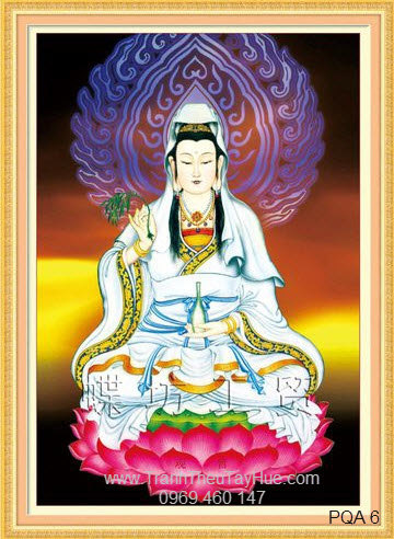 Tranh thêu truyền thống Phật Bà Quan Âm là tranh thêu truyền thống của Việt Nam được thêu HOÀN TOÀN THỦ CÔNG BẰNG TAY, bởi những thợ thêu chuyên tâm, lành nghề và dày kinh nghiệm của đất kinh thành Huế, những bức tranh thêu Phật Bà Quan Âm này sử dụng các kỹ thuật thêu truyền thống đặc trưng của xứ Huế. Tranh thêu Phật Bà Quan Âm mang đến cho chúng ta sự bình an và thanh tịnh trong tâm hồn, ngoài ra tranh thêu Phật Bà Quan Âm còn dùng để thờ phụng thay cho những bức tượng phật.