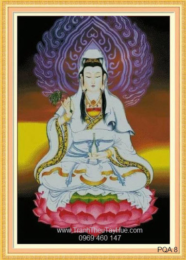 Tranh thêu truyền thống Phật Bà Quan Âm là tranh thêu truyền thống của Việt Nam được thêu HOÀN TOÀN THỦ CÔNG BẰNG TAY, bởi những thợ thêu chuyên tâm, lành nghề và dày kinh nghiệm của đất kinh thành Huế, những bức tranh thêu Phật Bà Quan Âm này sử dụng các kỹ thuật thêu truyền thống đặc trưng của xứ Huế. Tranh thêu Phật Bà Quan Âm mang đến cho chúng ta sự bình an và thanh tịnh trong tâm hồn, ngoài ra tranh thêu Phật Bà Quan Âm còn dùng để thờ phụng thay cho những bức tượng phật.
