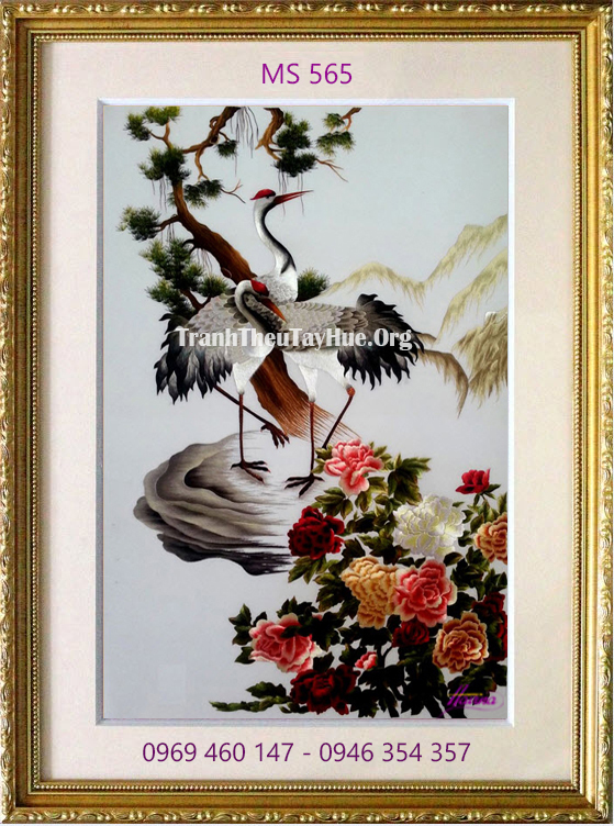 Tên tác phẩm: Tranh thêu tùng hạc mẫu đơn MS 565
