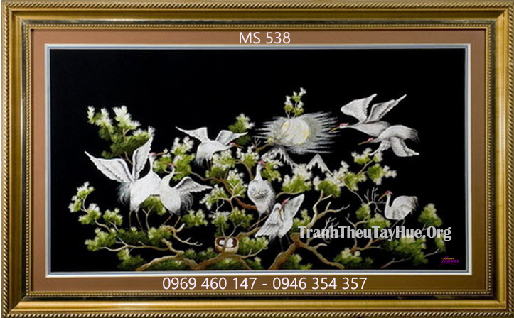 CHI TIẾT TÁC PHẨM TRANH THÊU TÙNG HẠC DIÊN NIÊN MS 538: