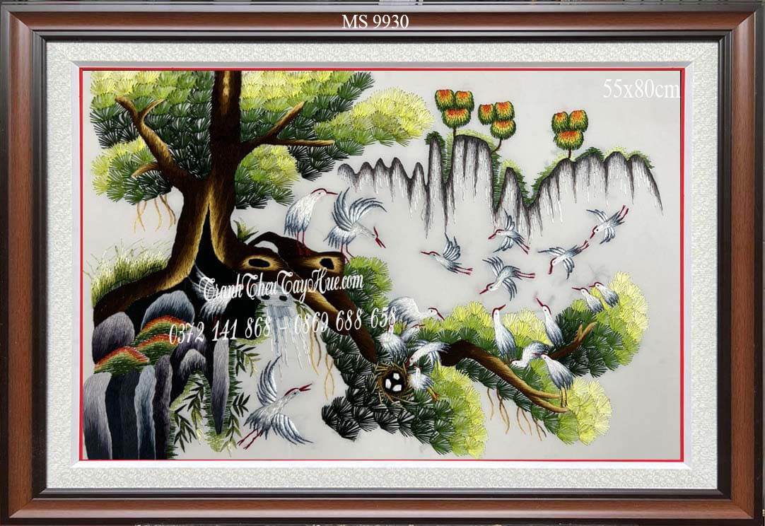 Tên tác phẩm: Tranh thêu tùng hạc diên niên MS 9930