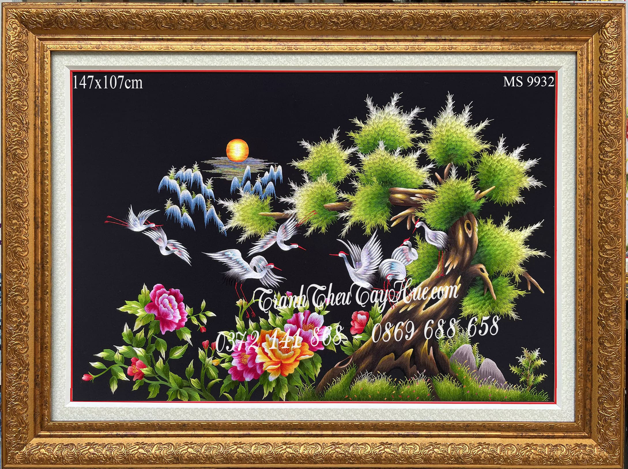 Tên tác phẩm: Tranh thêu tùng hạc diên niên MS 9932