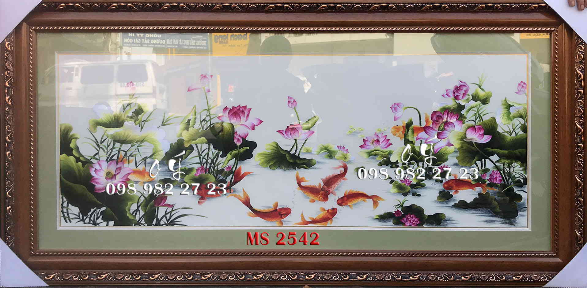 Tên tác phẩm: Tranh thêu cá chép hoa sen MS 2542