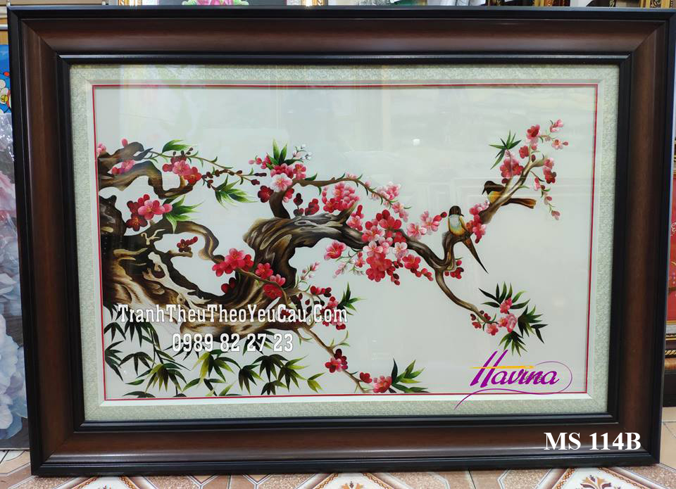 Tên tác phẩm: Tranh thêu hoa đào MS 114