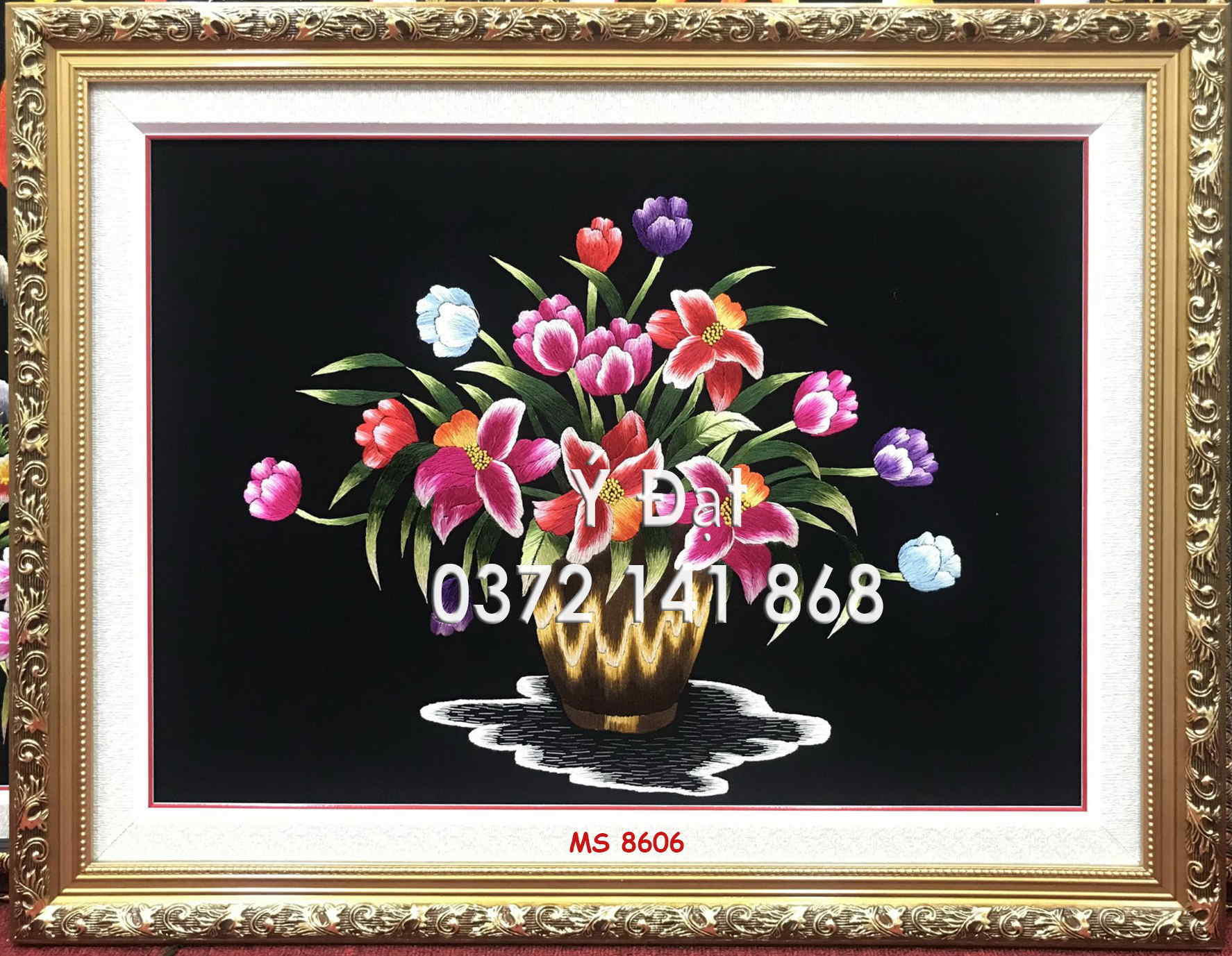 Tranh thêu hoa được thêu bởi nghệ nhân giỏi