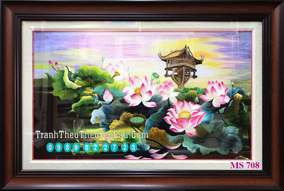 Tên tác phẩm: Tranh thêu hoa sen MS 708