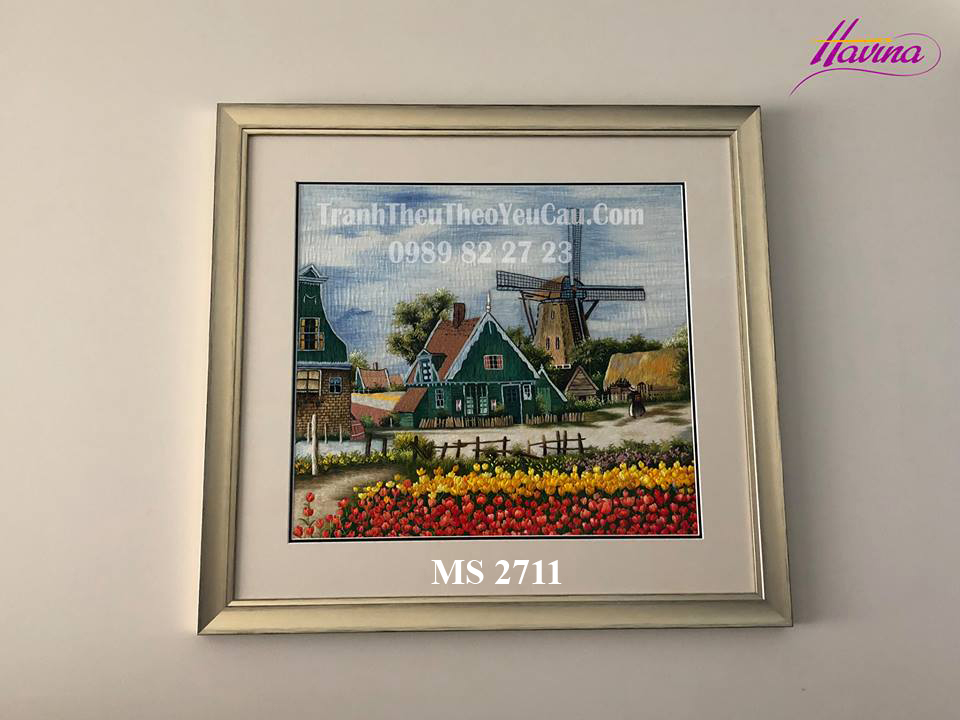 Tên tác phẩm: Tranh thêu phong cảnh làng quê MS 2711