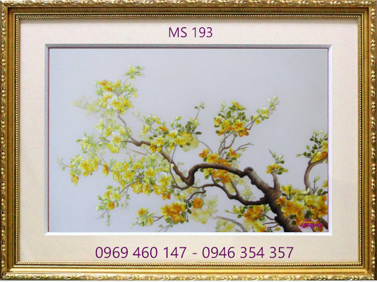 Hoa mai là một biểu tượng của “Tết đến xuân về”, hễ thấy mai, đào nở là lòng ta lại rộn ràng về một cái tết sum vầy đang đến gần. Do đó, Tranh thêu hoa mai là biểu tượng cho một cuộc sống tươi mới, tràn ngập niềm vui, an khang thịnh vượng.