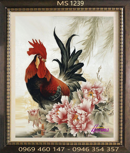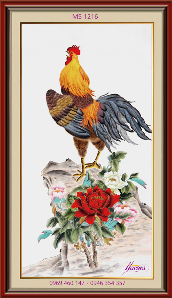 Hai hình ảnh mang ý nghĩa tuyệt vời này được kết hợp trong tác phẩm Tranh thêu con gà trống và hoa mẫu đơn ( Tên tiếng Hán còn gọi là Tranh thêu Kim kê và Mẫu đơn). Nếu treo tranh thêu con gà trống và hoa mẫu đơn trong nhà, chắc chắn sẽ đem lại cho gia đình bạn nhiều may mắn trong công việc và hạnh phúc trong cuộc sống.