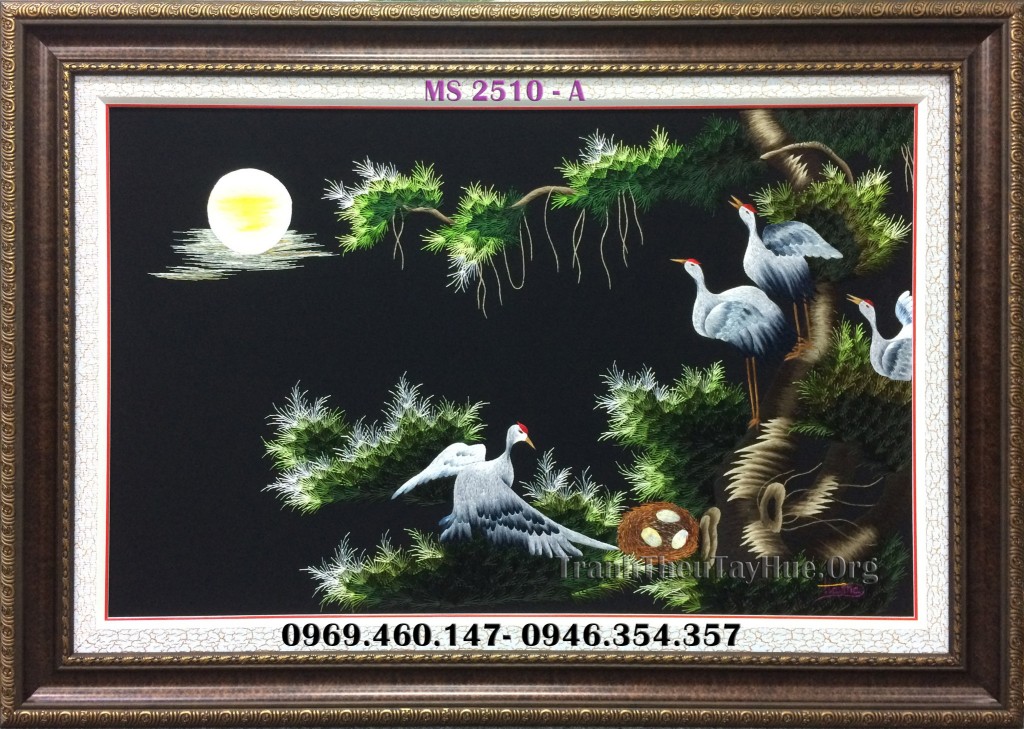 Tranh thêu mừng tân gia Tùng hạc diên niên- giá trị của hạnh phúc