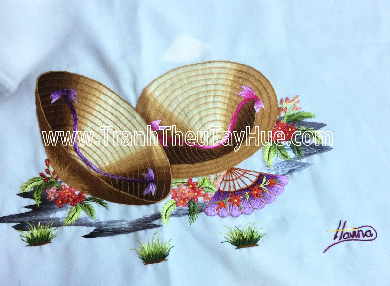 Tranh thêu nón lá là mẫu tranh thêu khá quen thuộc ở Tranh thêu tay Huế. Nhiều khách hàng chọn mua tranh để trang trí nhà ở và làm quà dành tặng bạn bè, đối tác.
